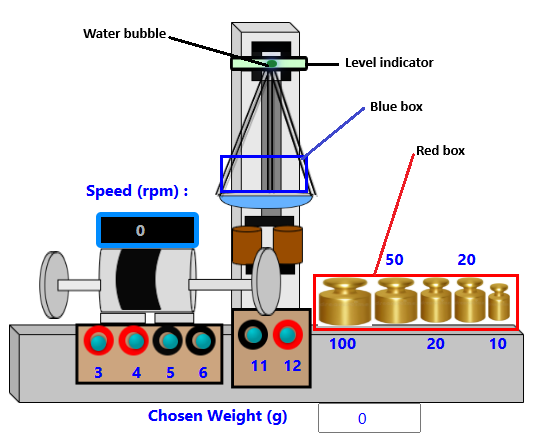 - There are weights (g) in the red box. Drag weights from that box to drop them on the blue box. (Fig. 3)