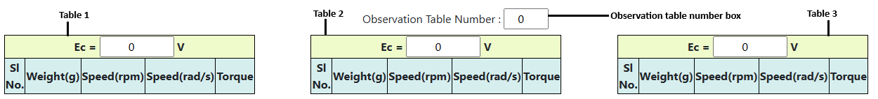 - Note: There will be observations for three successive control phase voltages in three different tables, for first one the number entered will be 1. It means the first table will be filled.