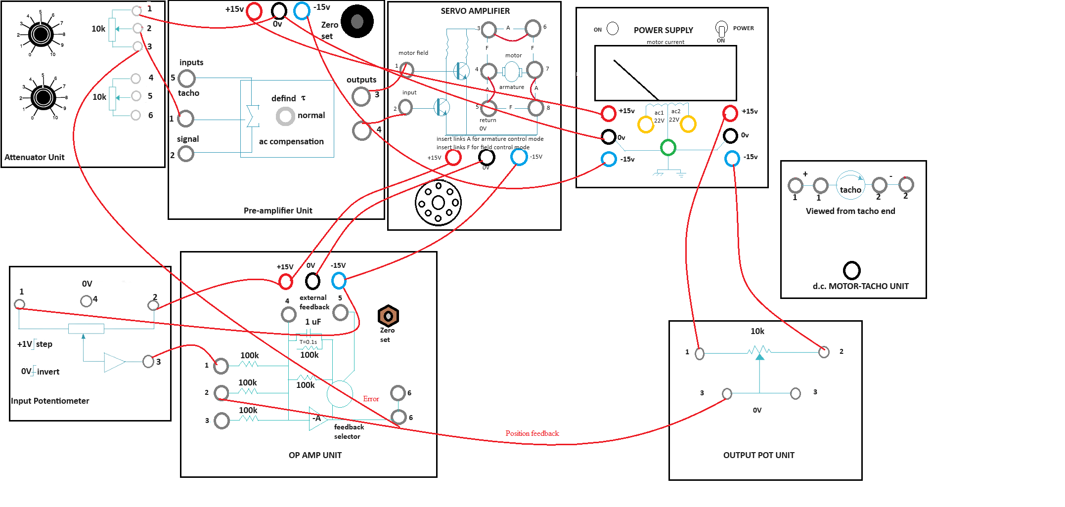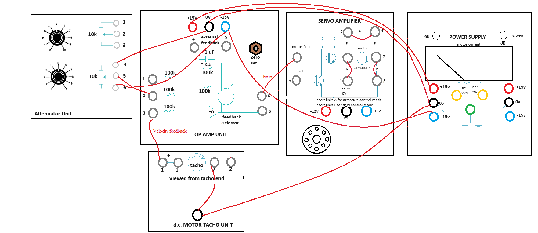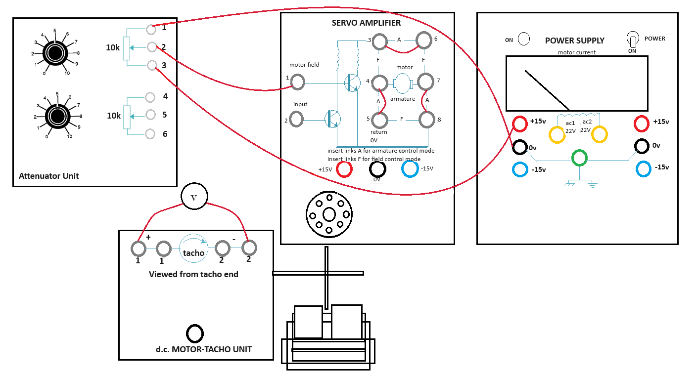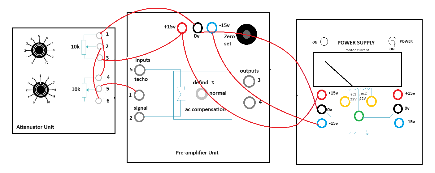 - Attenuator Unit upper potentiometer point 2 - Servo Amplifier point 1