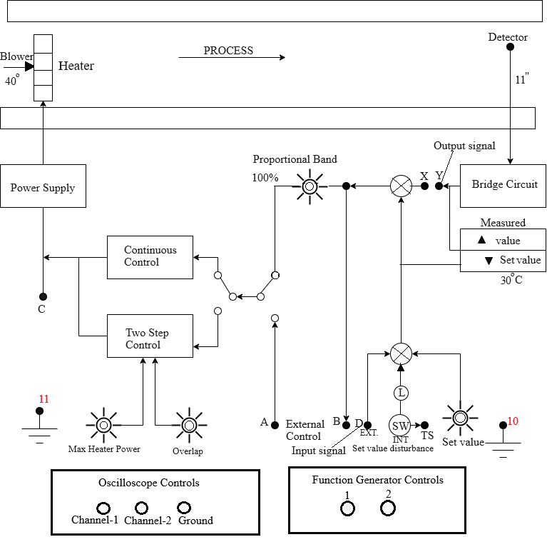 Fig. 1. Schematic of the Process Trainer plant with oscilloscope and function generator