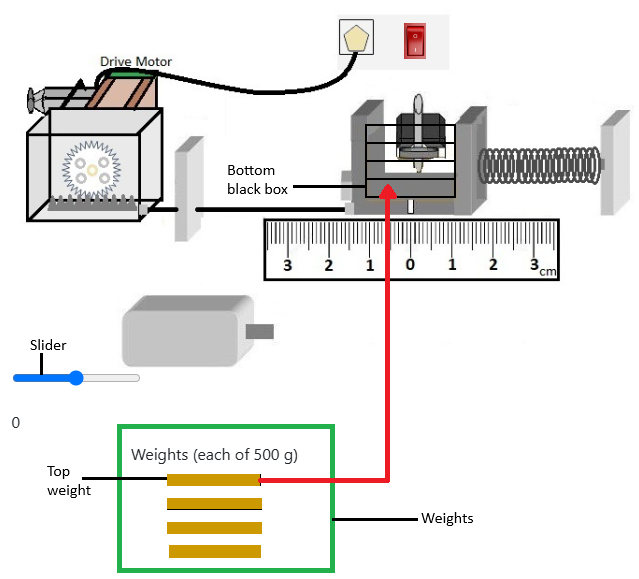 - First drag weights and drop them sequentially (move the top weight to the bottom black box on the cart and do the same for the second weight by placing it in the second lowest box.) in the mass carriage system.