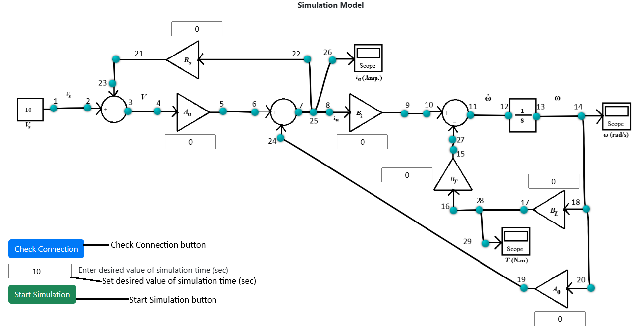 - Obtain the simulation model (Fig. 7) by connecting the connection points (blue points) following the instructions below: