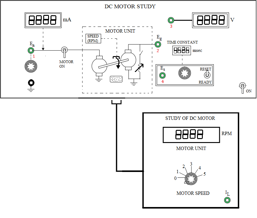 - Bring back all the knobs to zero value. Follow steps (1-6) for Ea= 10 and 12 volts. Set 'MOTOR' switch to 'OFF' and switch off the motor unit..