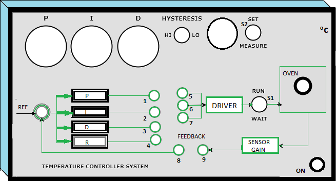 $$\frac{(\ Oven \ final \ temperature \ - \ Entered \ room \ temperature)}{(Reference \ (set) \ temperature (ex: \ 5^\circ \ C) \times \ Proportional \ gain \ (ex: \ 0.5 \times \ 20 \ = \ 10)) \times 0.01 \ (\ as \ sensor \ gain \ is \ 10 \ mV/°C)}$$