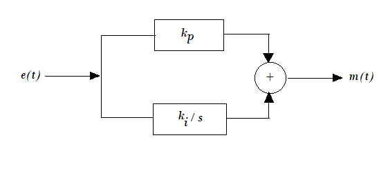 $$ m(t)= k_{p} e(t)+ k_i \int_{0}^{t}e(t)dt = k_p e(t)+\frac{1}{T_i}\int_{0}^{t}e(t)dt \tag{7}$$
