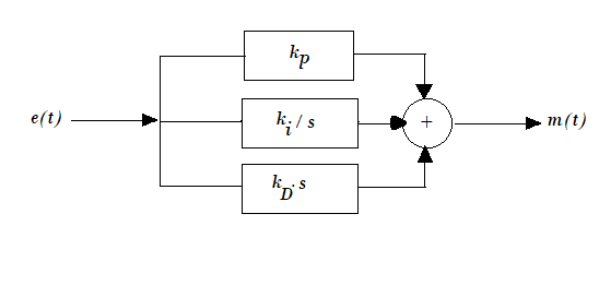 $$ \frac{M(s)}{E(s)}=(k_p + \frac{1}{T_i \ s} + T_D \ s) \tag{10}$$