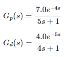 6. Given the following two transfer functions for a process and disturbance, find the feedforward control gain Kff.