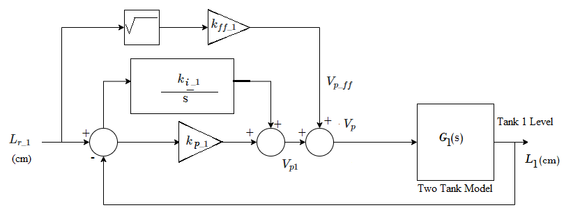 tank-1 via the commanded pump voltage. It is based on a Proportional-plus-Integral-plus-Feedforward scheme.